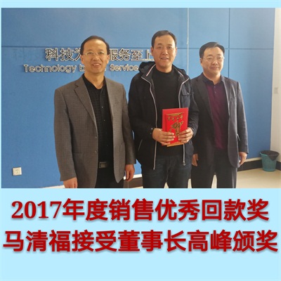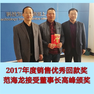 『 四平吉泰熱力設(shè)備公司-銷售年會董事長為獲獎銷售員頒獎 』